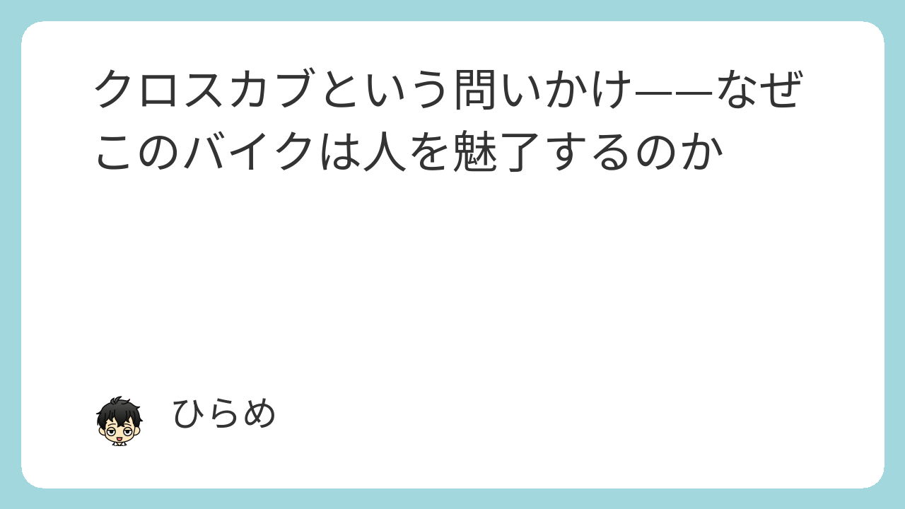 数値で価値を測ることに慣れた現代において、クロスカブはその基準からそっと距離を取ることを促してくる。その在り方は、どこか静かで、哲学的である。